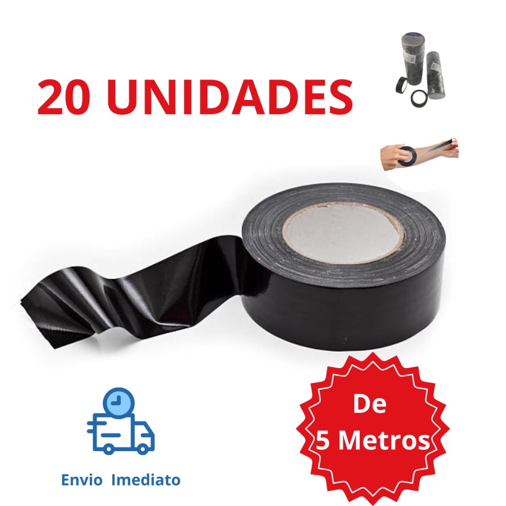 Kit 10 Fita Isolante 5 10 20 Metros Antichama 5m 10m 20m Pacote 10 Unidades Rolo Fitas Preta Atacado Disponível 3 Tamanhos