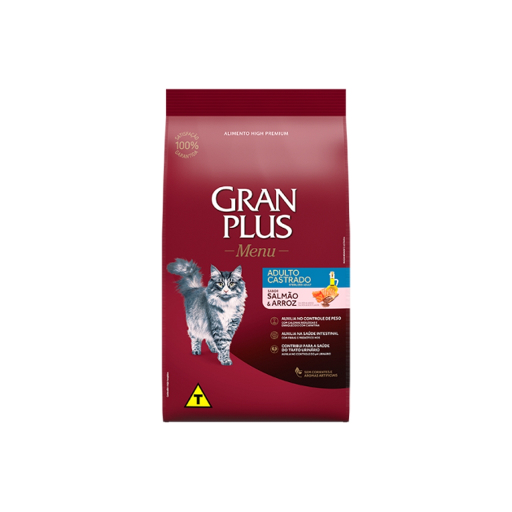 Ração Gran Plus Menu Gatos Adultos Castrados Salmão e Arroz