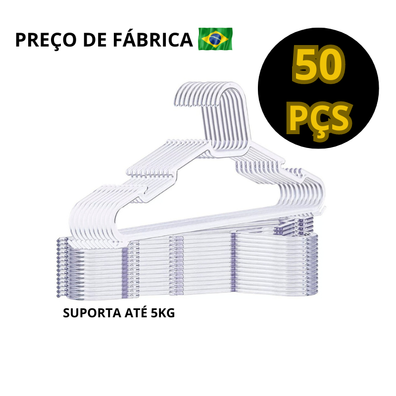 Kit 50 cabide CRISTAL transparente para roupas acrílico adulto atacado reforçado resistente barato 50 unidades