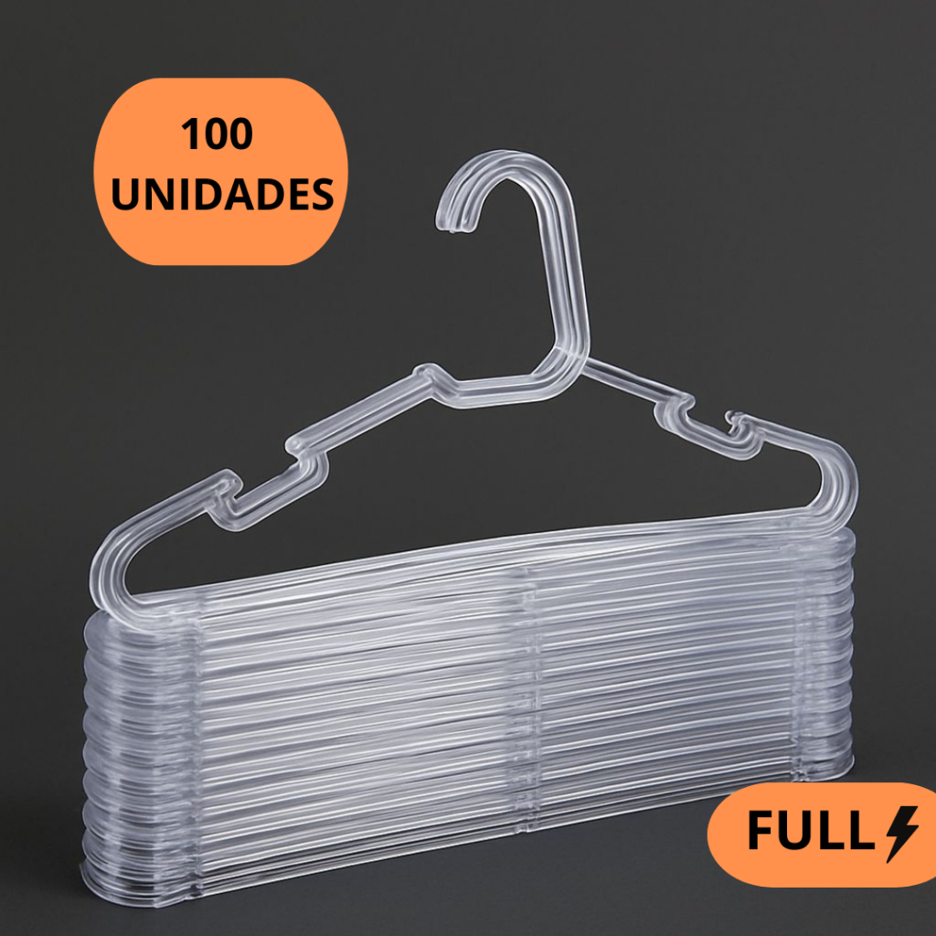 Kit 100 Cabide acrílico TRANSPARENTE Cabide Reforçado para roupas adulto Cristal envio imediato promoção