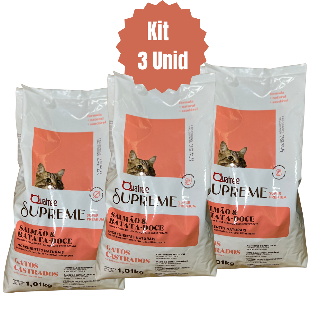 kit com 3 quatree supreme gatos castrados salmão de 1-kg