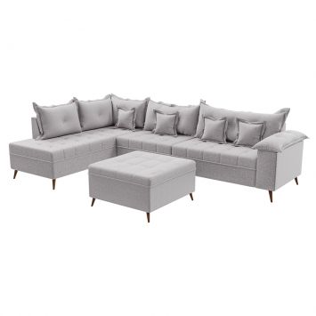 Sofá de Canto 7 Lugares Glória Suede Cinza