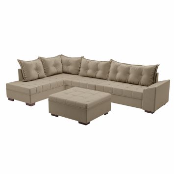Sofá de Canto 7 Lugares Glória Suede Bege