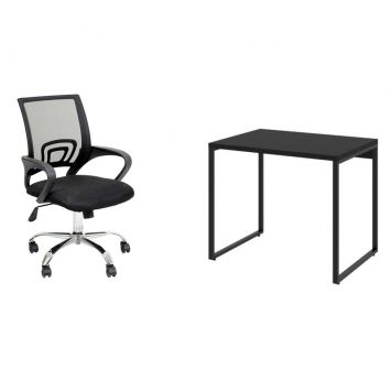 Conjunto de Mesa Kuadra com Cadeira de Escritório Secretária Giratória New Java Preta