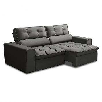 sofá 3 lugares retrátil e reclinável malta veludo grafite 200 cm