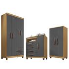 Guarda Roupa 4 Portas Porto Belo Com Multiuso e Cômoda Sapateira I01 Carvalho Grafite Clique Chique