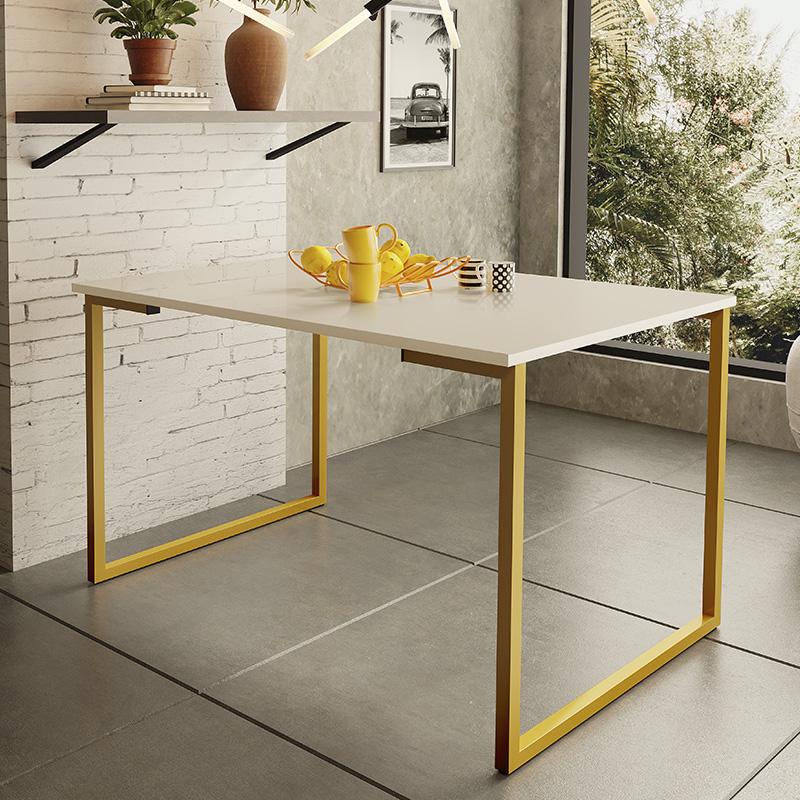 Mesa de Jantar Steel Estilo Industrial Pés de Aço 120x80cm Cobre/Off White