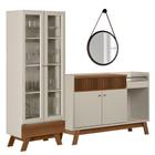 Kit Cristaleira e Buffet com Espelho 54cm Lara Bnn Decor HB Móveis Nature/Off White
