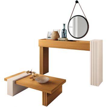 Kit Aparador Mesa De Centro Lord Com Espelho Adnet Preto B01 Cinamomo Off White - Lyam Decor