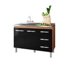 Balcão Para Pia De Cozinha 1,20m Bianca Com 2 Portas e 3 Gavetas Cor Savana/Preto Moblis