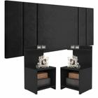 Conjunto Cabeceira Casal 1,40 Julia com Kit 2 Mesas de Cabeceira RPM - Preto - Lojas RPM
