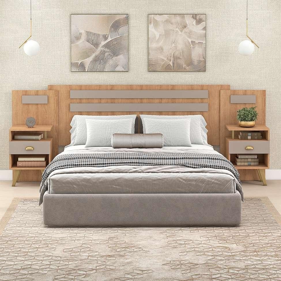 Conjunto de Cabeceira Casal com 2 Mesas de Apoio Duna 2 GV Mel e Fendi