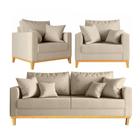 Kit Sofá Beny 180cm + 2 Poltronas Base de Madeira Linho - Ecotec Decor