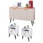 Kit 2 Mesinhas Cabeceira Estilo Retrô Branco 1 Gaveta Nicho Decorativo e Buffet Kiev Cantinho Café Off White/Cinamomo - RPM Móveis