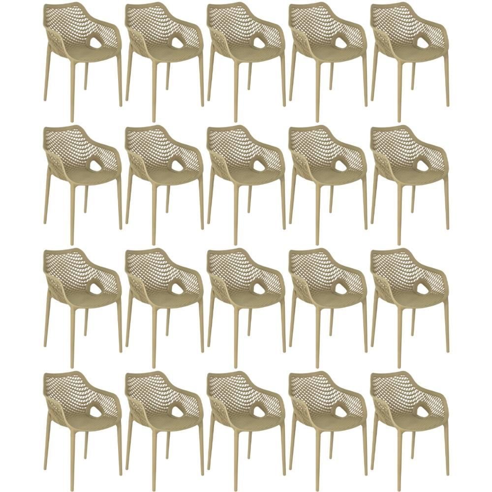 Kit 20 Cadeiras de Jantar Design Suits com Braços Empilhável em Polipropileno - Nude