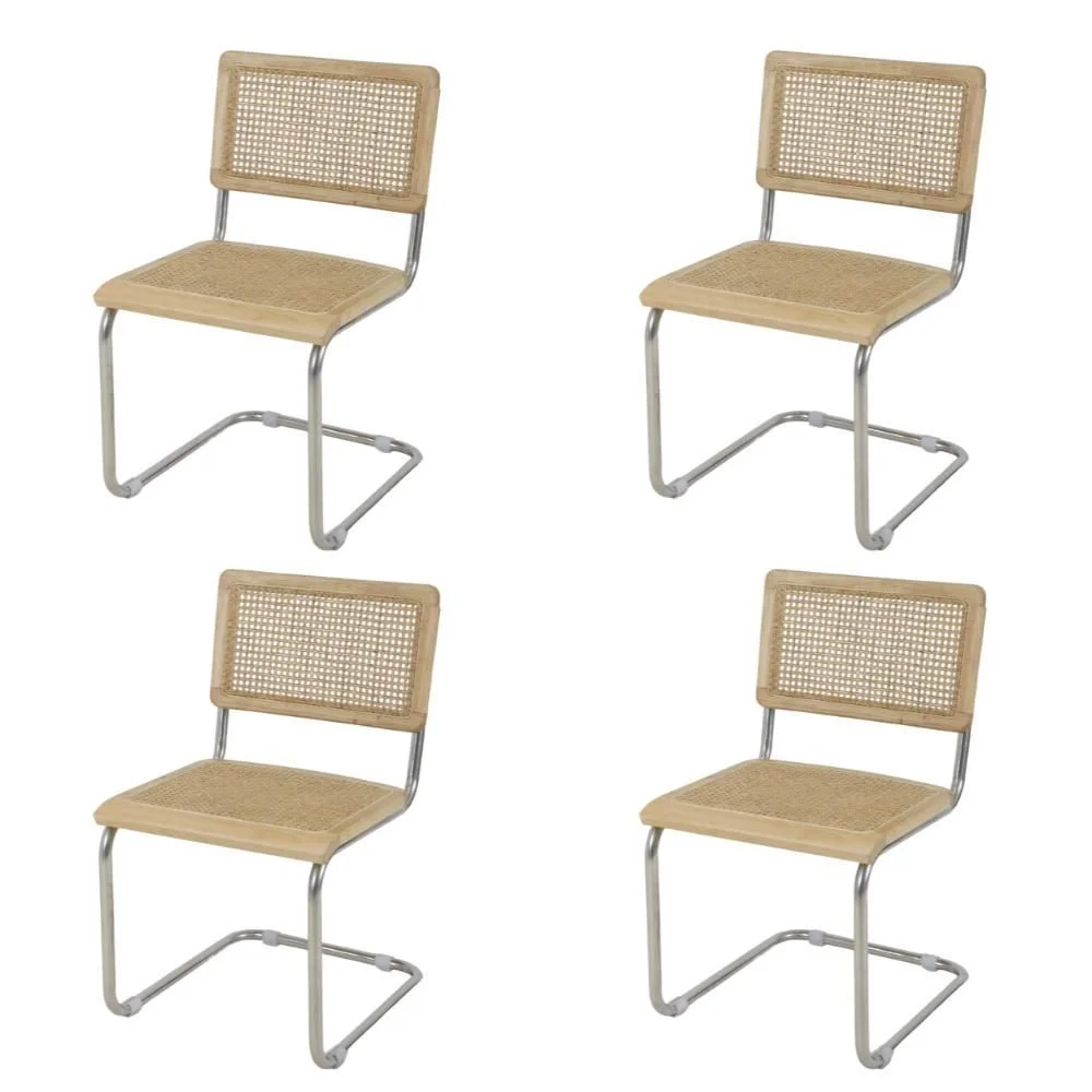 Kit 4 Cadeiras de Jantar Cesca com Base Inox Assento Encosto em Palha Trançada para Sala de Estar