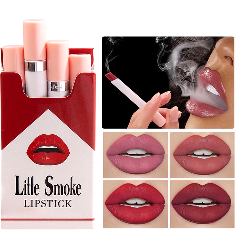 4Pcs/Conjunto de Batom Criativo de Maço de Cigarro / Batom Labial Fosco Aveludado À Prova d’Água Duradouro