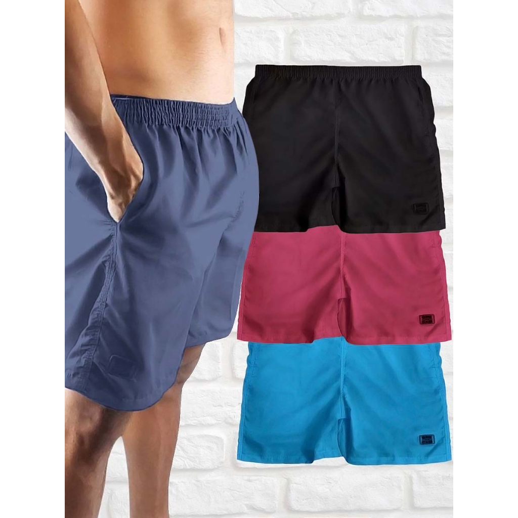Kit 5 Bermudas Masculina Lisas Tactel Caminhada Academia Praia Piscina 3 Bolsos