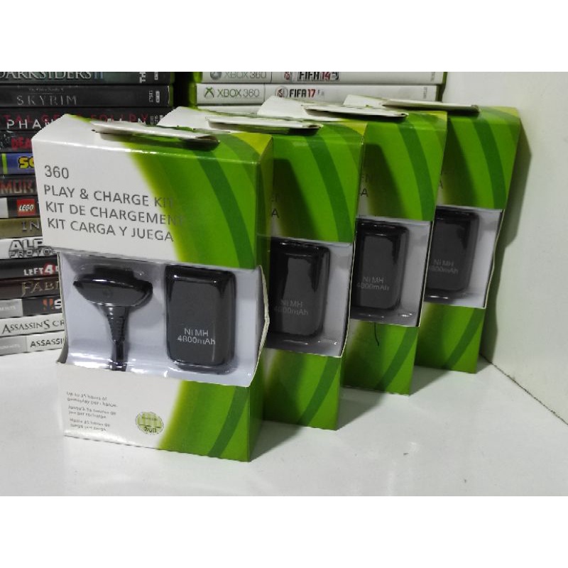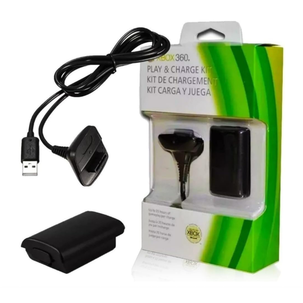 Bateria Para Controle De Xbox 360 Com Cabo E Carregador Preto