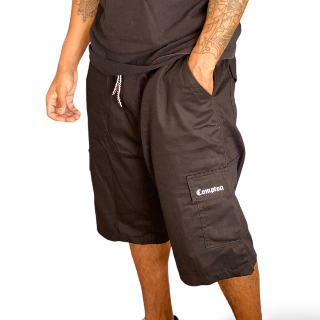 Bermuda Cargo COMPTON Preta Masculina Sarja Modelo Exclusivo