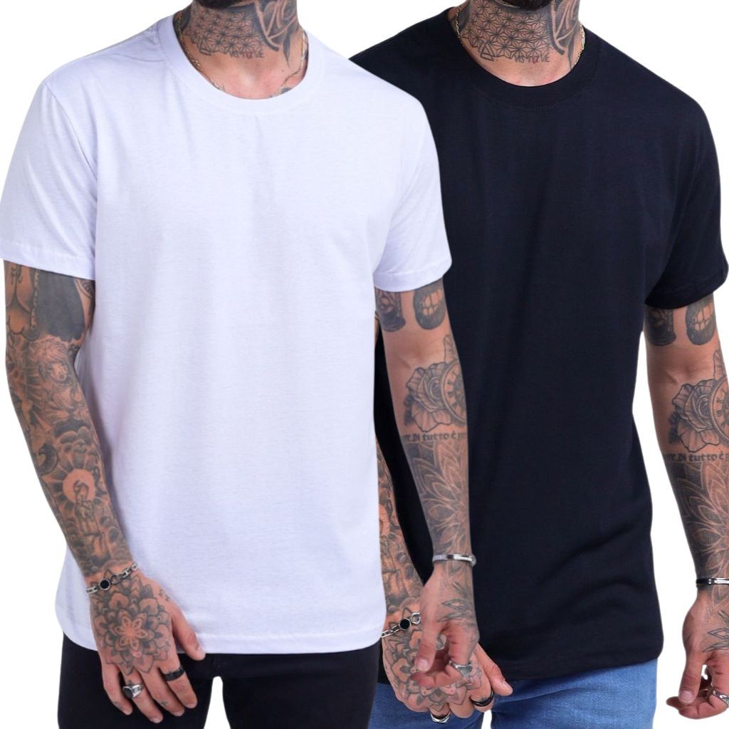 Kit 2 Camisa Camisetas Masculina Branca e Preta Lisa Básica 100% Algodão