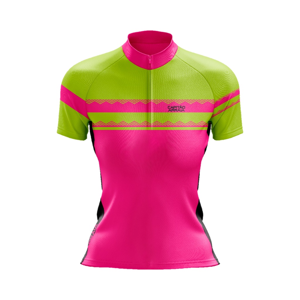 Camisa de Ciclismo Flúor Rosa Feminina, Mountain Bike, Speed e lazer, Camisa de Ciclismo Feminina