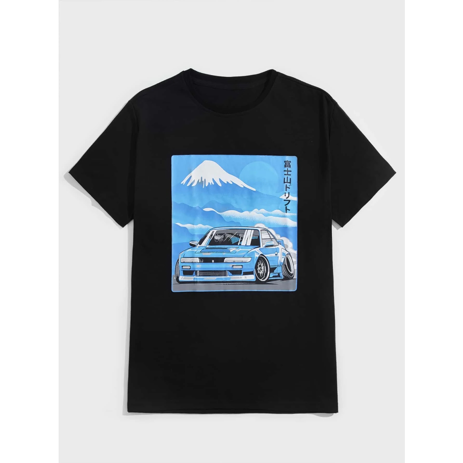 Camiseta Monte Fuji Carro Japão Estampa Desenho Grafico Fast & Furious Velocidade Carro Sportivos Oversized Manga Curta Ombro Caido Street Life