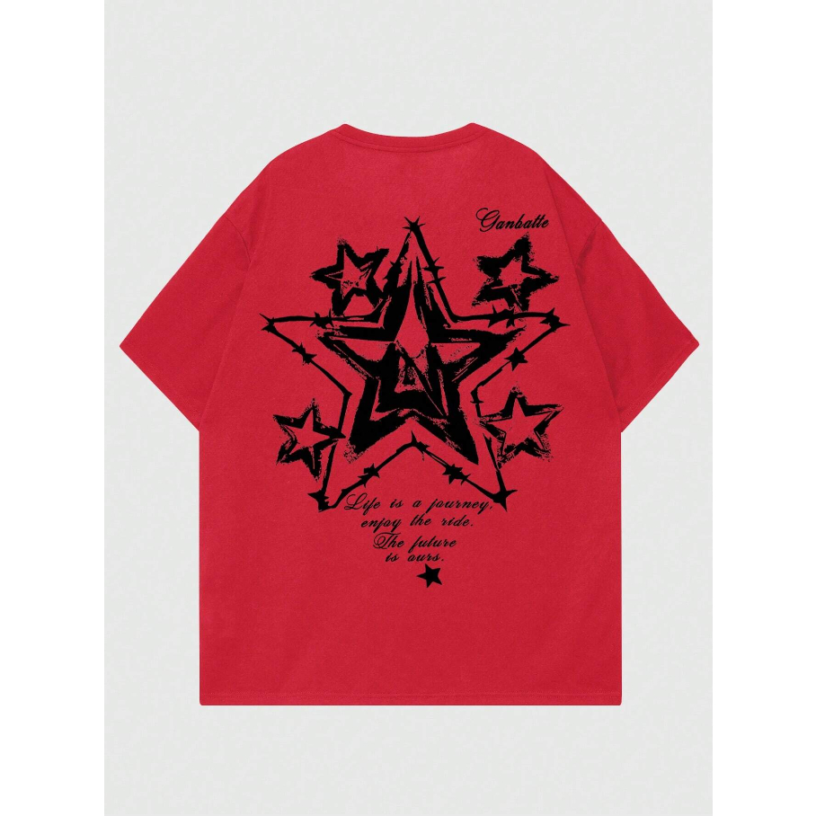 Camiseta Ganbatte Long Line Estampa Grafica Desenho Estrela A Vida é Uma Viagem Motivação Humor Life Street Manga Curta Ombro Caido Oversized
