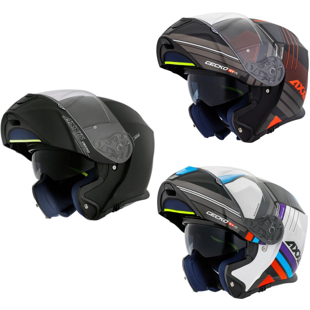 Capacete moto escamoteável com óculos interno Axxis Gecko modelos e cores