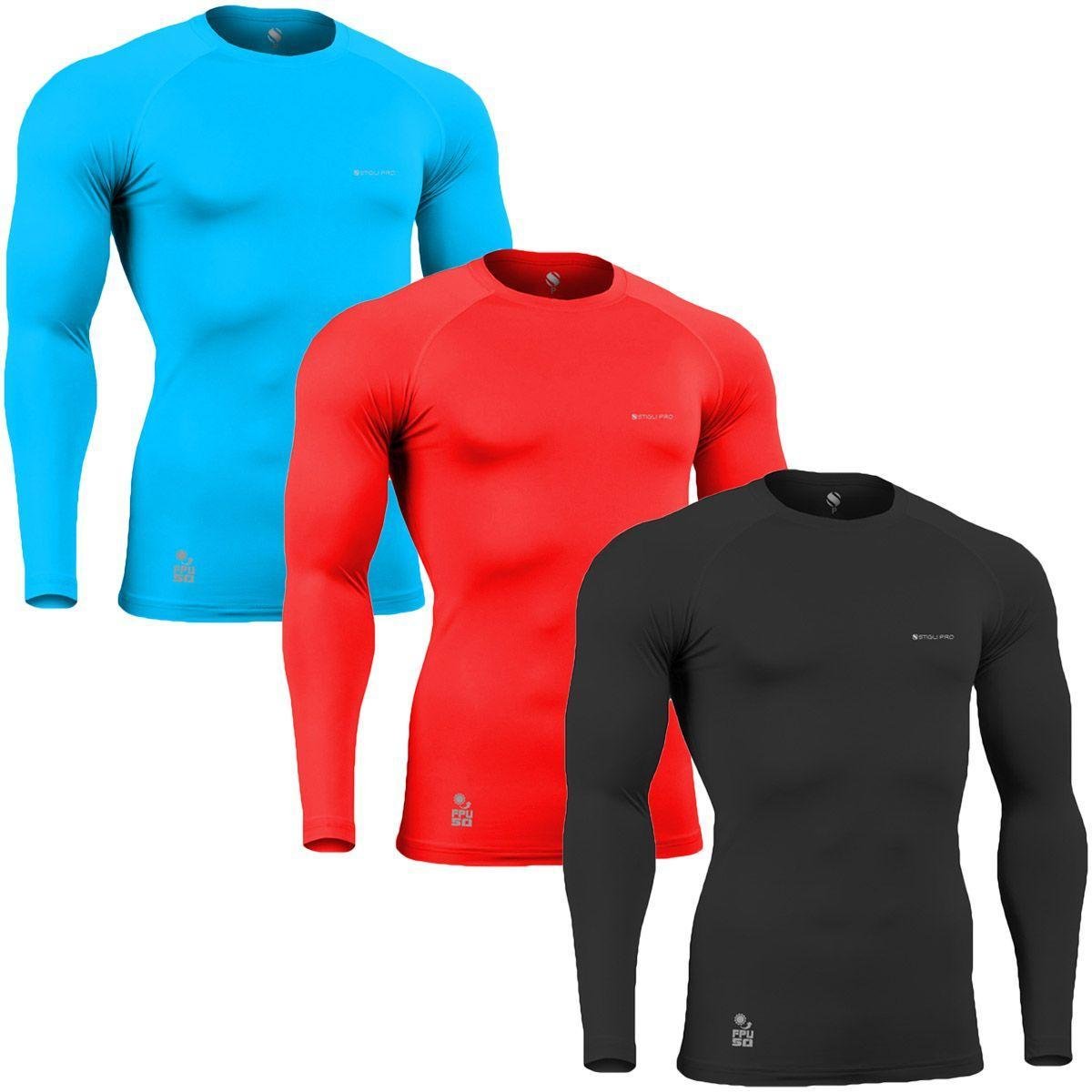Kit C/ 3 Camisas de Compressão Térmica Stigli Pro Proteção Solar FPU50+ Manga Longa Poliamida