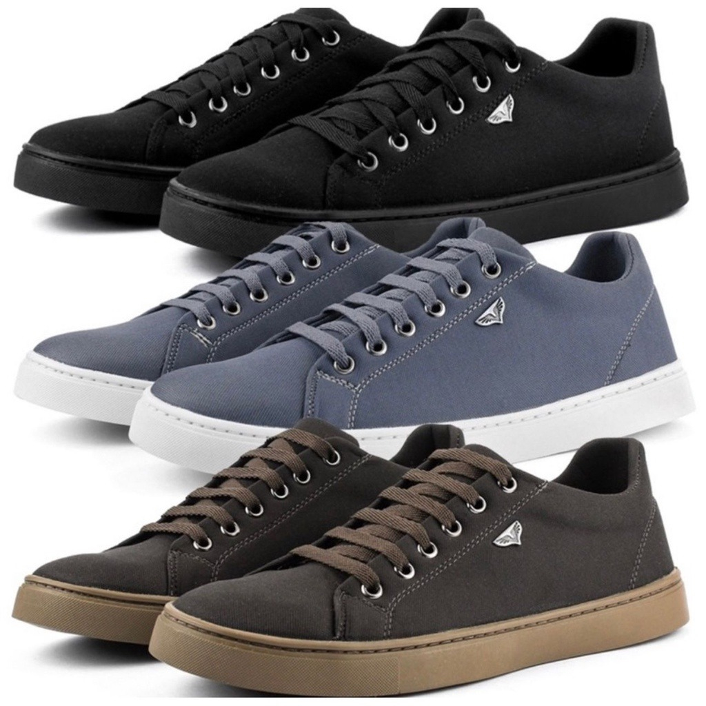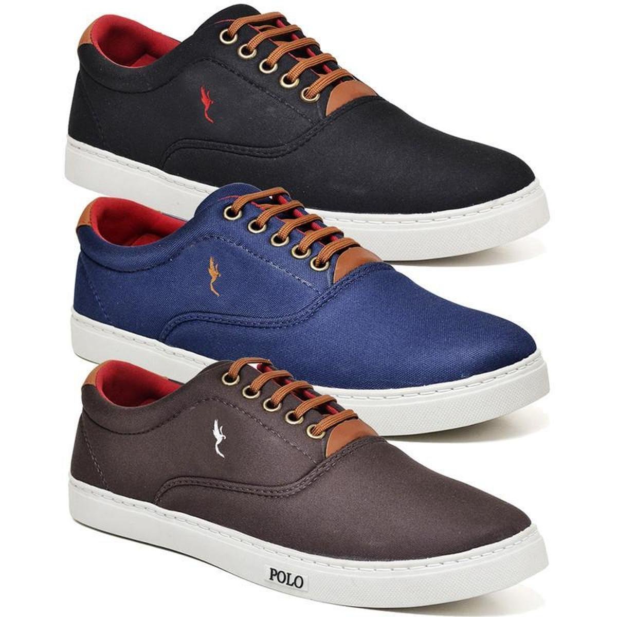 Kit 3 Pares de Tenis Sapatenis Polo Blu Masculino Basico em Tecido com Bordado