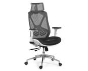 Cadeira de escritorio tela mesh, cor cinza e branco, base giratoria cromada