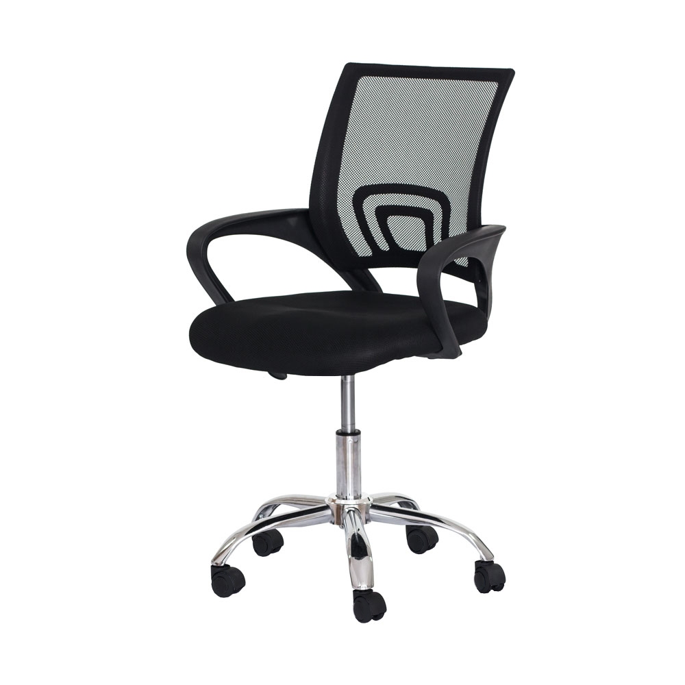 Cadeira de Escritório Tela Mesh Zebrada Base Giratória Cromada Altura Ajustável Preta