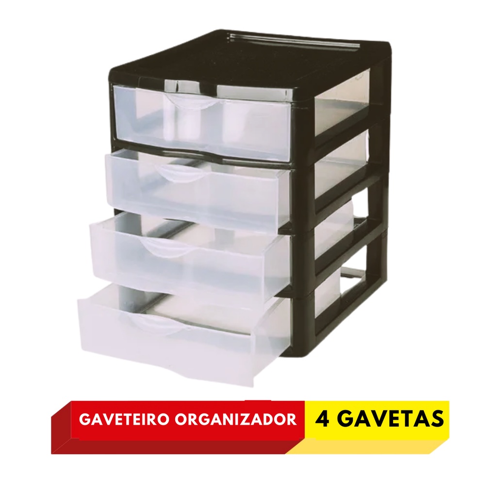 Gaveteiro Plástico Preto Organizador Nitron com 4 Gavetas