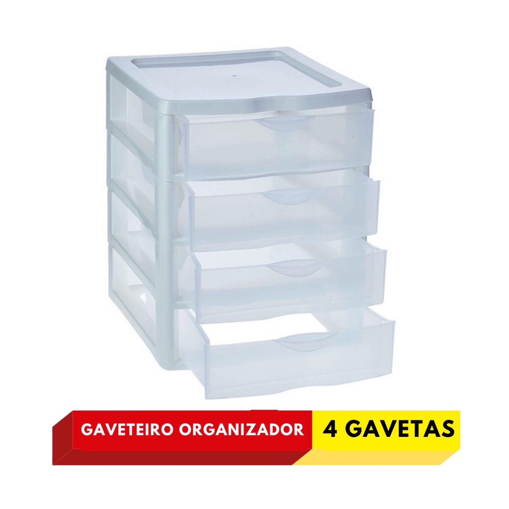 Gaveteiro Plástico Branco Organizador Nitron com 4 Gavetas