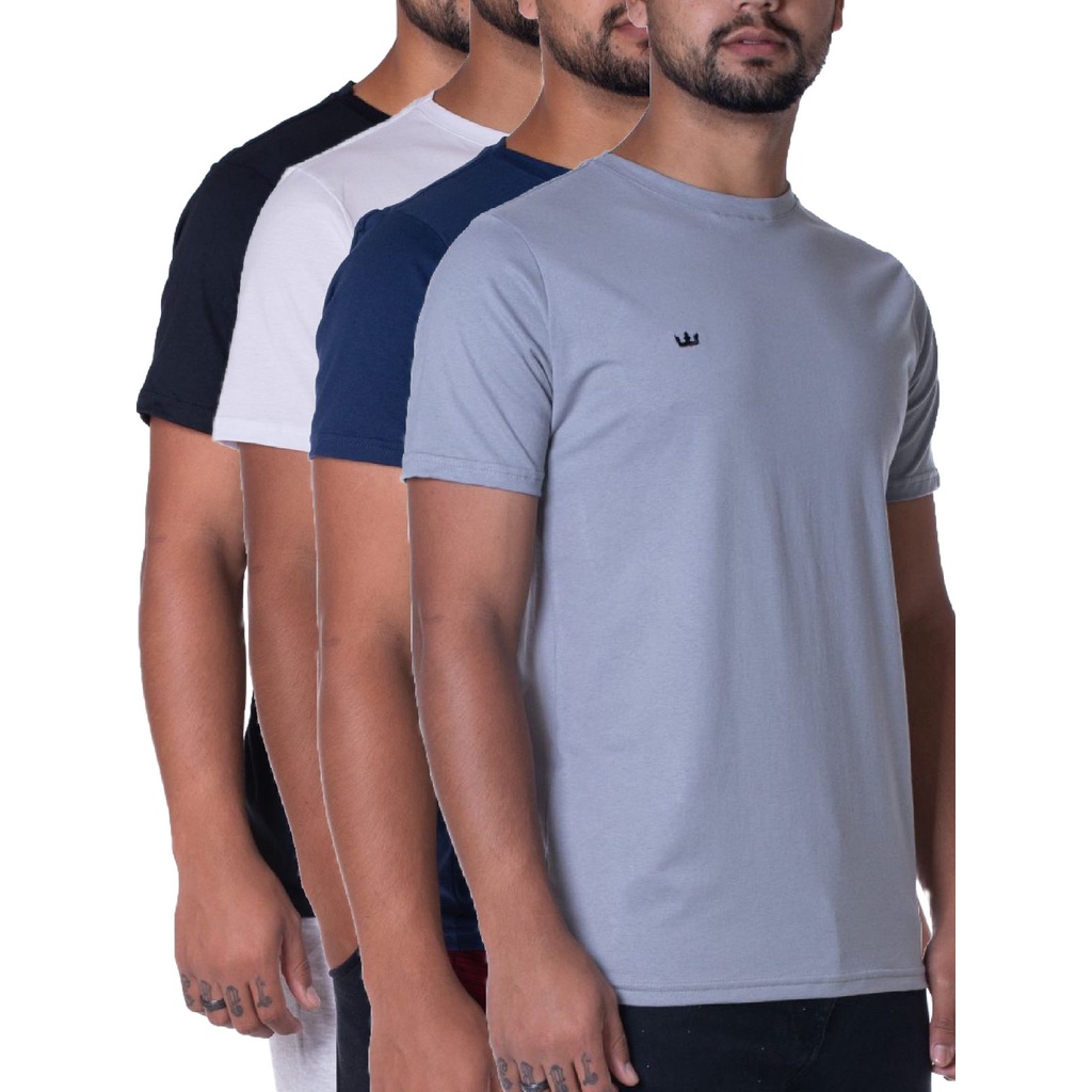 Kit 4 Camisetas Básicas Masculina Algodão Premium Slim Fit