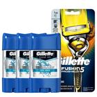 Kit 3 Desodorantes Gillette Ant. Clear Gel Cool Wave 82g + Aparelho Proshield