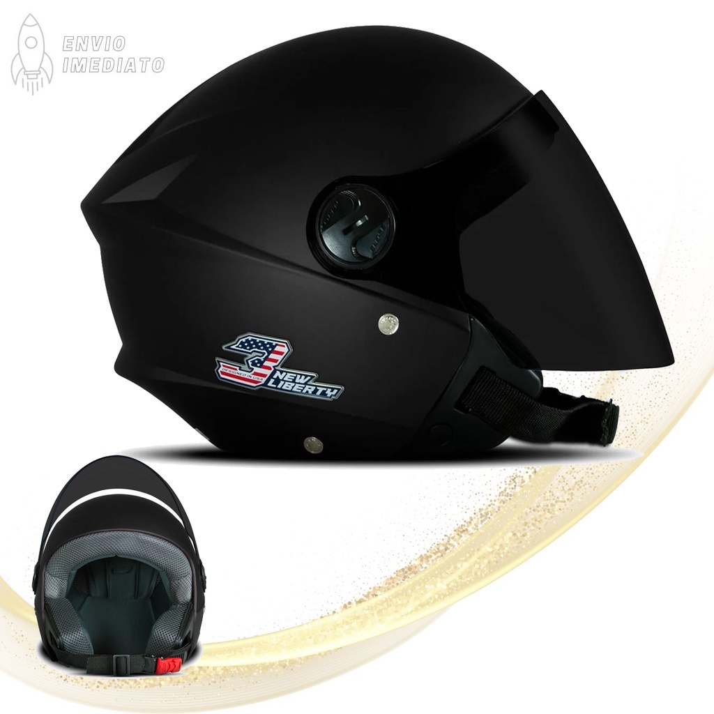 Capacete Aberto New Liberty Three Elite Fosco Feminino Masculino Pro Tork com Viseira Fume ou Cristal Moto Motoqueiro