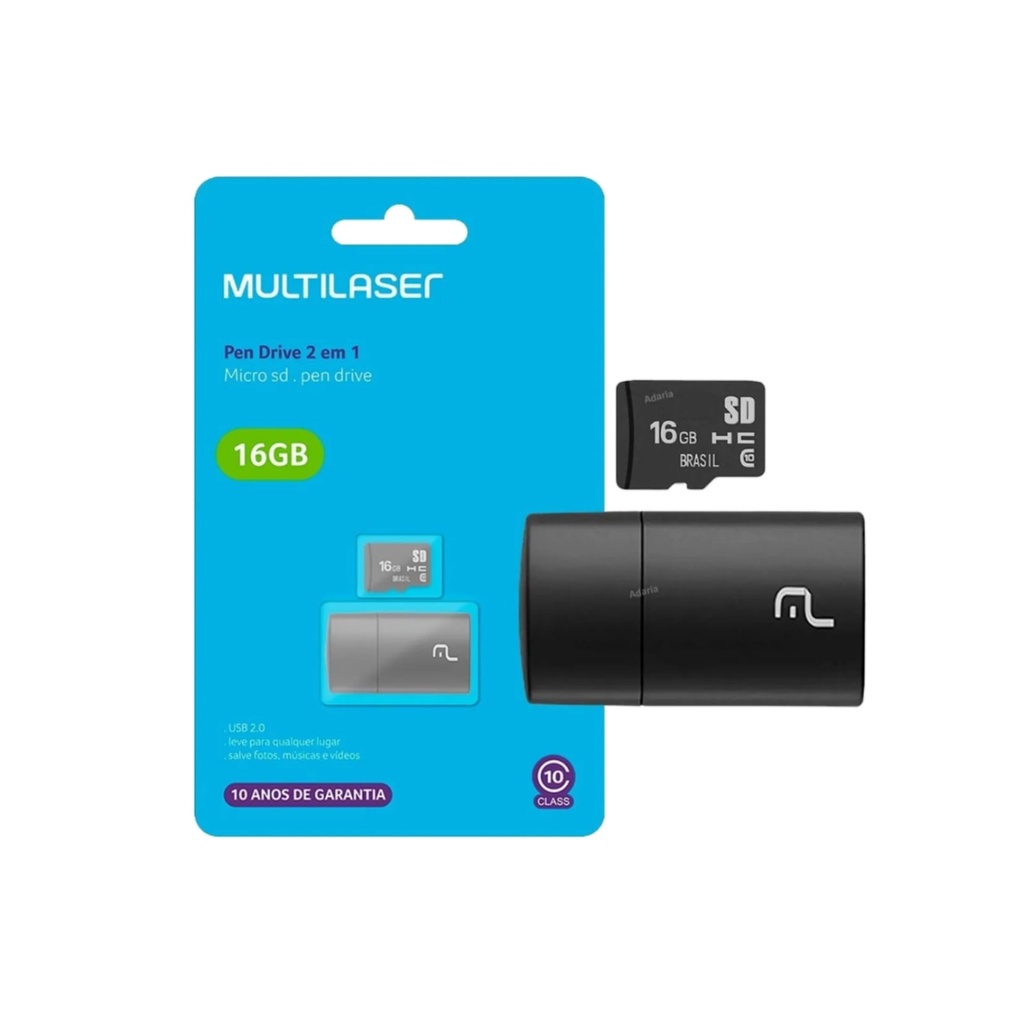 Cartão de Memória SD e Adaptador Pen Drive Multilaser 16GB