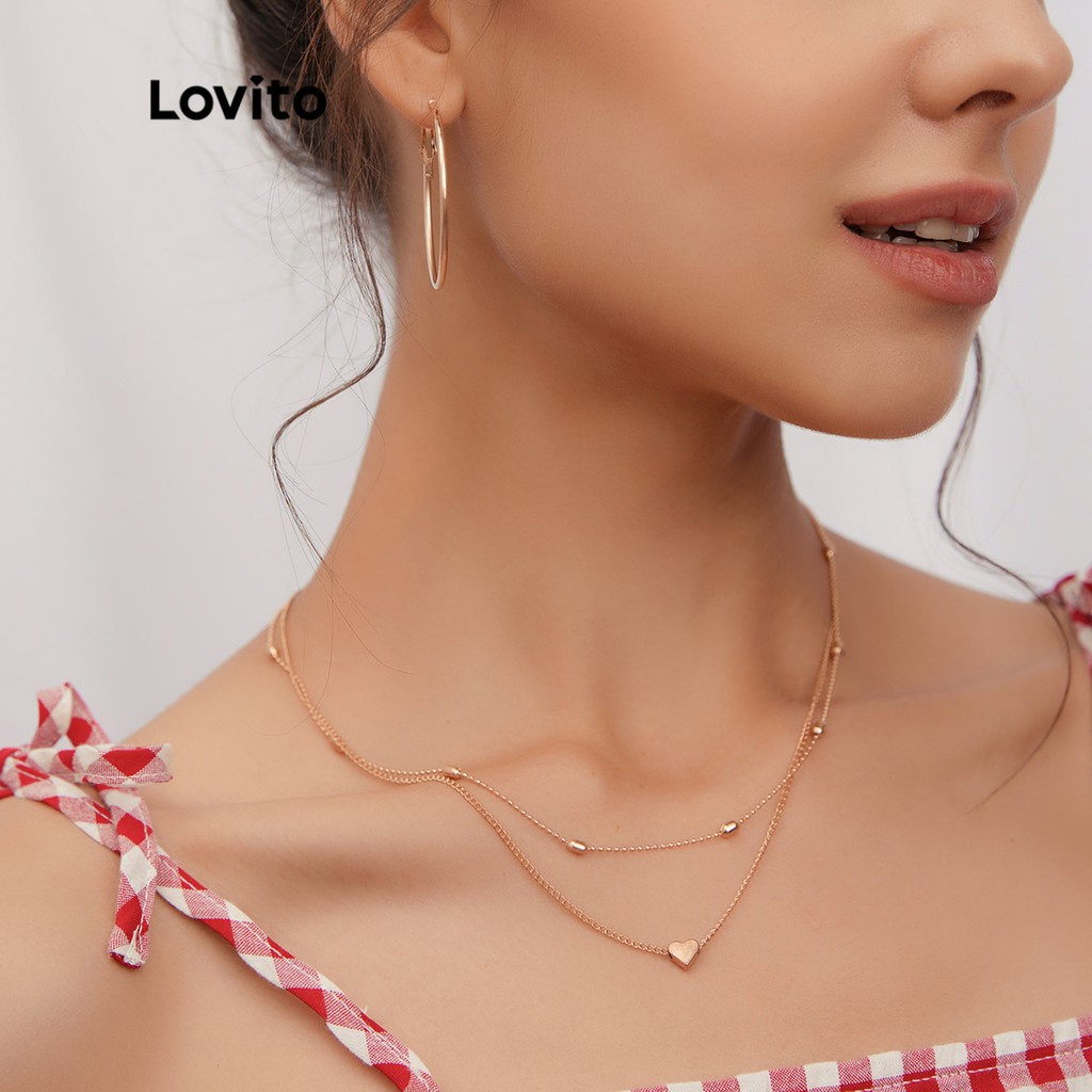 Lovito Colares Casuais De Strass Em Forma De Coração Para Mulheres LFA09470