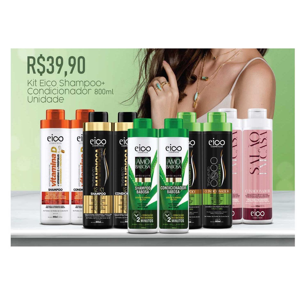 Eico Kit 800ml Shampoo e Condicionador Varios Tipos, Escolha o Seu!