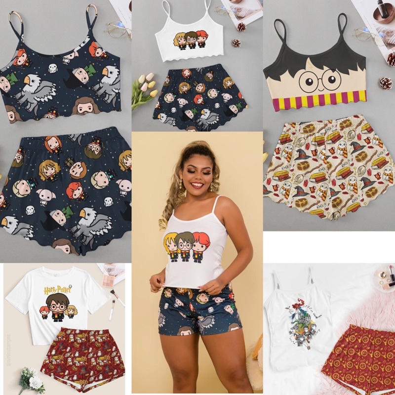Pijama Harry Potter feminino personagens roupa de dormir baby Doll moda