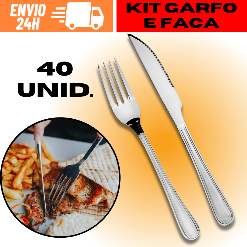 Kit Conjunto Garfo e Faca 40 Peças Premium Reforçado Aço Inox 20 Garfos E 20 Facas Para Refeição Para Restaurante Buffet Faqueiro