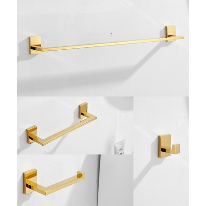 Kit Dourado Acessórios 4 Peças Preto Aço Inox Conjunto e Banheiro