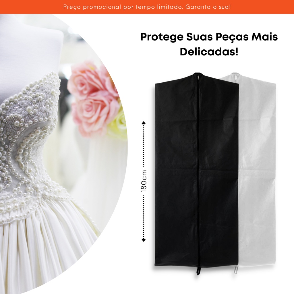 Capa para Vestido de Noiva Festa Madrinhas proteção anti mofo anti umidade impermeável protege da poeira 1,80x64cm