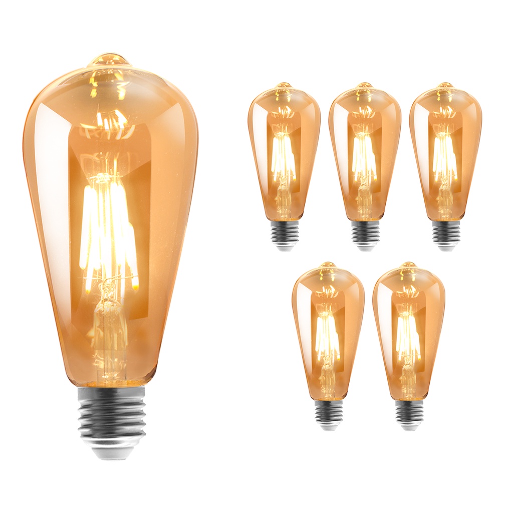 Kit 6 Lâmpadas Filamento Led Retrô Vintage St64 Luz Quente