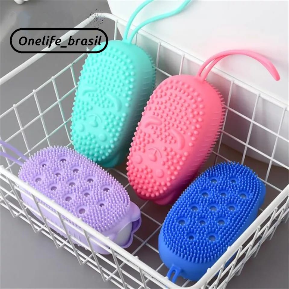 Bucha Esponja De Banho Escova De Silicone Esfoliante Massageadora Costas Corpo Todo