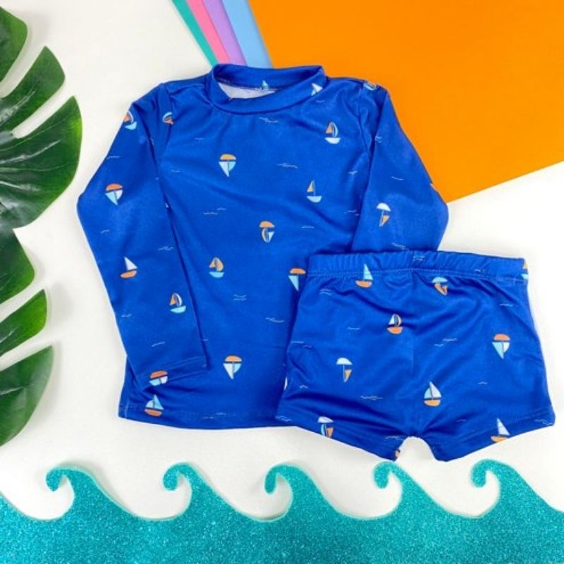 Conjunto de Banho Infantil Camisa + Sunga Box de 1 a 6 anos ENVIO EM ESTAMPA ALEATÓRIA QUEIMA DE ESTOQUE Modelo Estampado Protege do Sol
