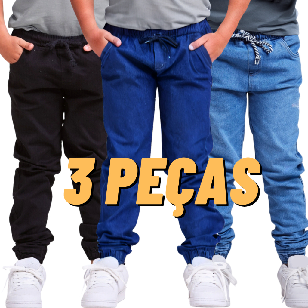 Kit 3 Calças Jeans Jogger Infantil Menino Diversas Cores 2 A 16 anos