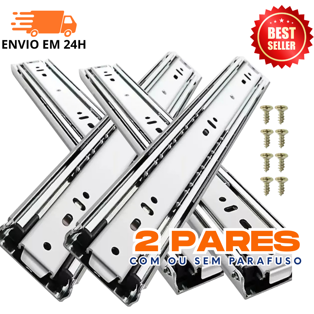 Kit 2 Pares 4 Unidades de Corrediça Telescópica Trilho Gavetas 35Cm (350MM) - Decore Art.